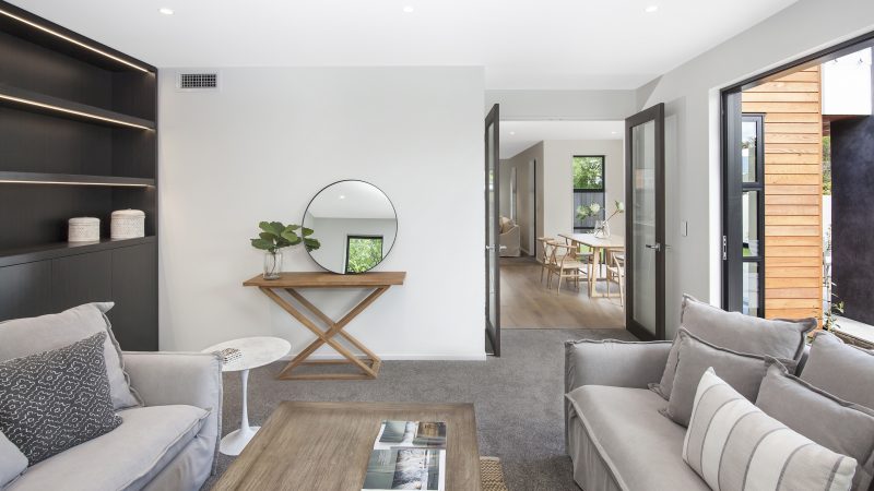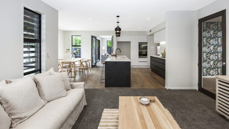 Multi-award-winning Canterbury builders – Home Trends Builders Ltd will complete the build. Step inside & you’ll be welcomed into a sophisticated yet traditionally-styled entry that leads you to the spacious, open-plan living areas of dining, family & kitchen. With plenty of space to channel your culinary flair, the designer kitchen includes quality appliances & a large scullery.